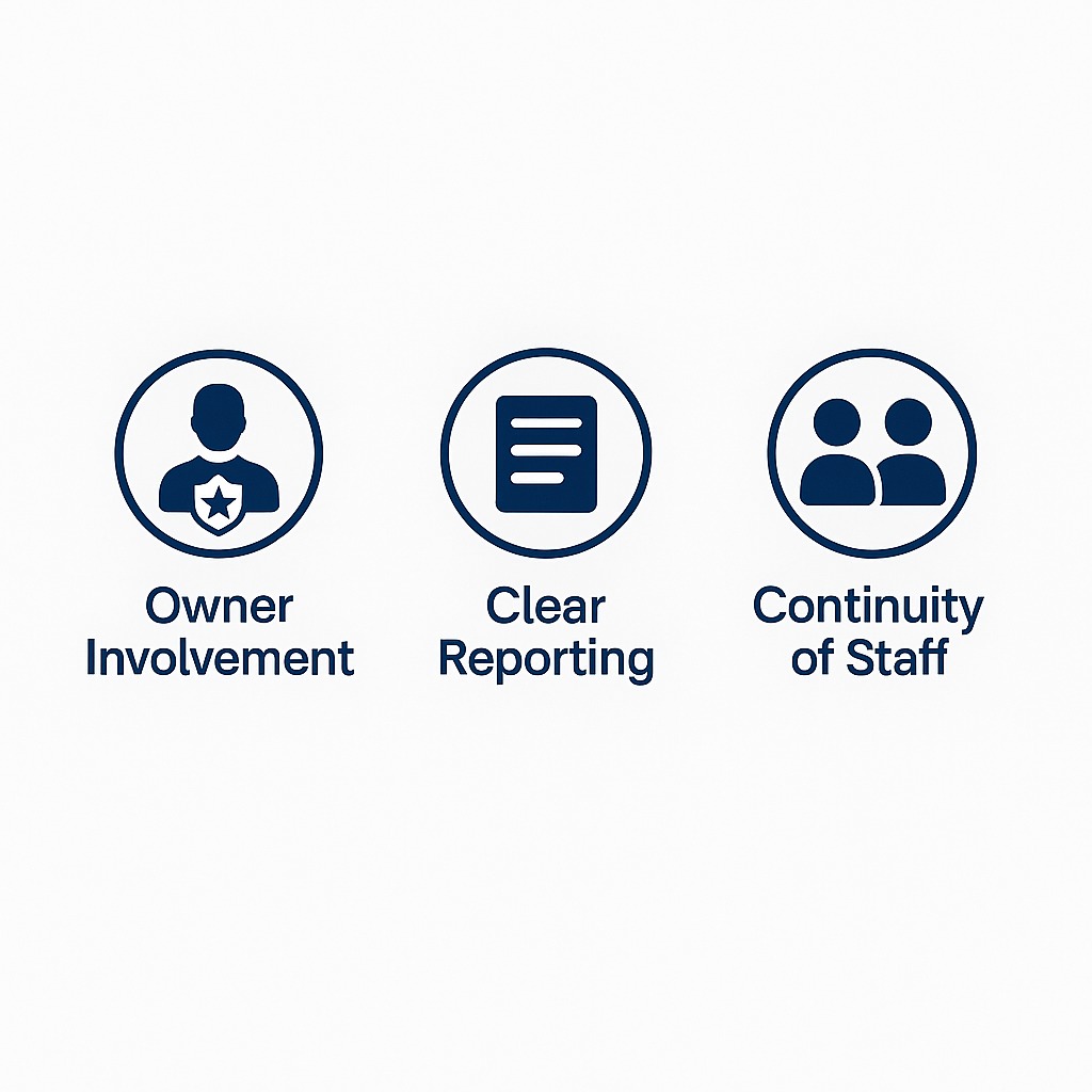 Clear assignment instructions (AIs), risk-based post orders, and concise daily reporting so you always know what is happening on site.